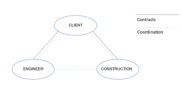 In this method the client hires an engineer or architect to provide complete design services. The client then announces and awards a separate construction contract based on the architect's documents. The client is therefore responsible for the design details and accountable to the contractor for the quality of the construction contract documents. DBB projects can also be awarded to the lowest bidder (lump sum) or negotiated to reduce the likelihood of the project being be awarded to a contractor who has submitted a too low or even a reckless bid. In the DBB method the contractor is not involved in the design phase. The client can entrust the control of the work to the same architect who made the design or to a different one. The client hires all the contractors involved in the work and pays for each contractor’s certifications once they have been measured and approved by the architect. It is summarized in the following figure below: