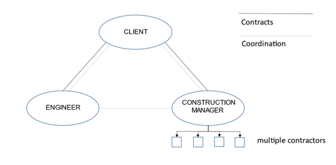 CM deals exclusively with construction-related activities. He or she is an expert in all the trades involved in a construction site, manages the day-to-day operations, and ensures that materials are delivered on time, that the necessary machinery and tools arrive on time, and that the necessary human and material resources are available for each job. This system has two variants: