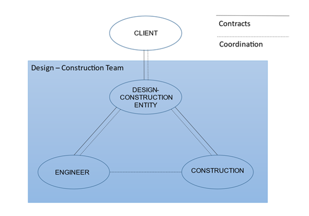 DB is often used for smaller projects due to its greater simplicity. The client hires a single designer/builder to provide architectural and engineering services and construction. The DB entity is responsible for all design and construction costs and in most cases provides a fixed price and delivery schedule. It is summarised in the figure below: