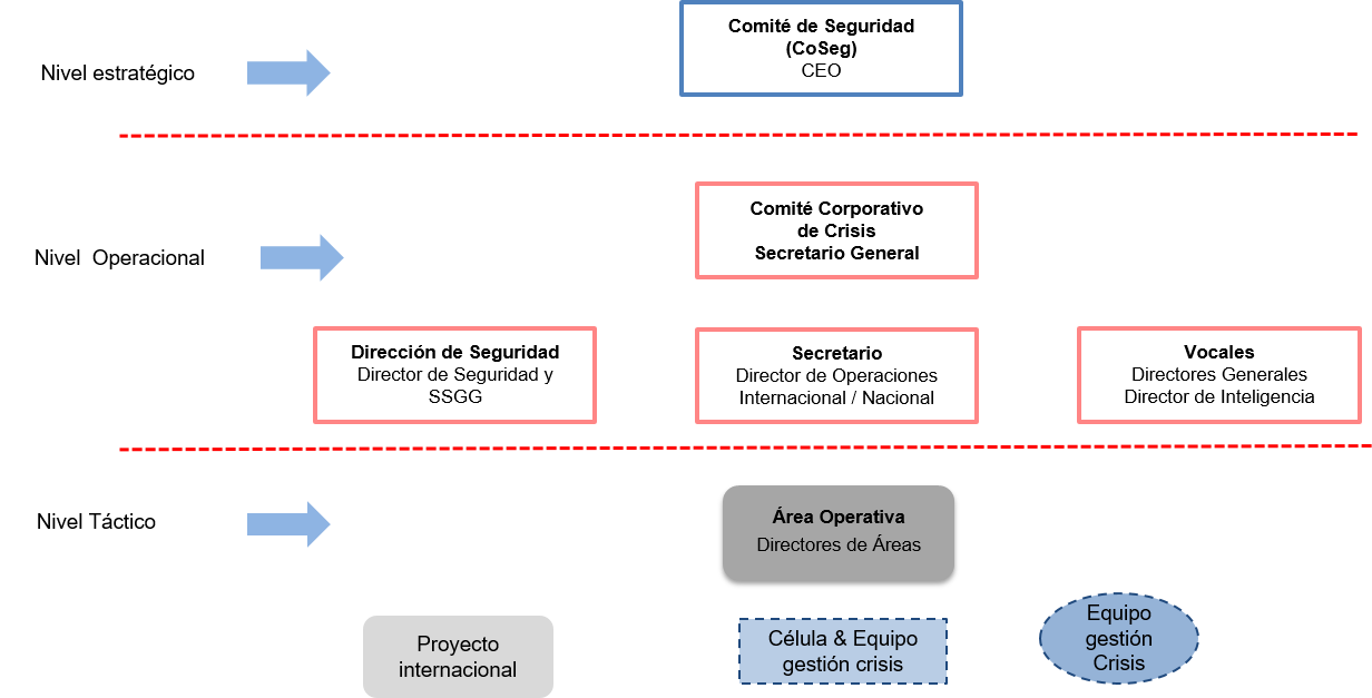 3. una estructura local de crisis para la planificación y puesta en marcha de las decisiones, medidas de seguridad y planes de contingencia.