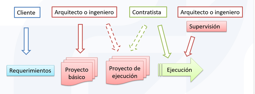 - Un cliente (público o privado), que es el que siente la necesidad, la define y paga la obra.